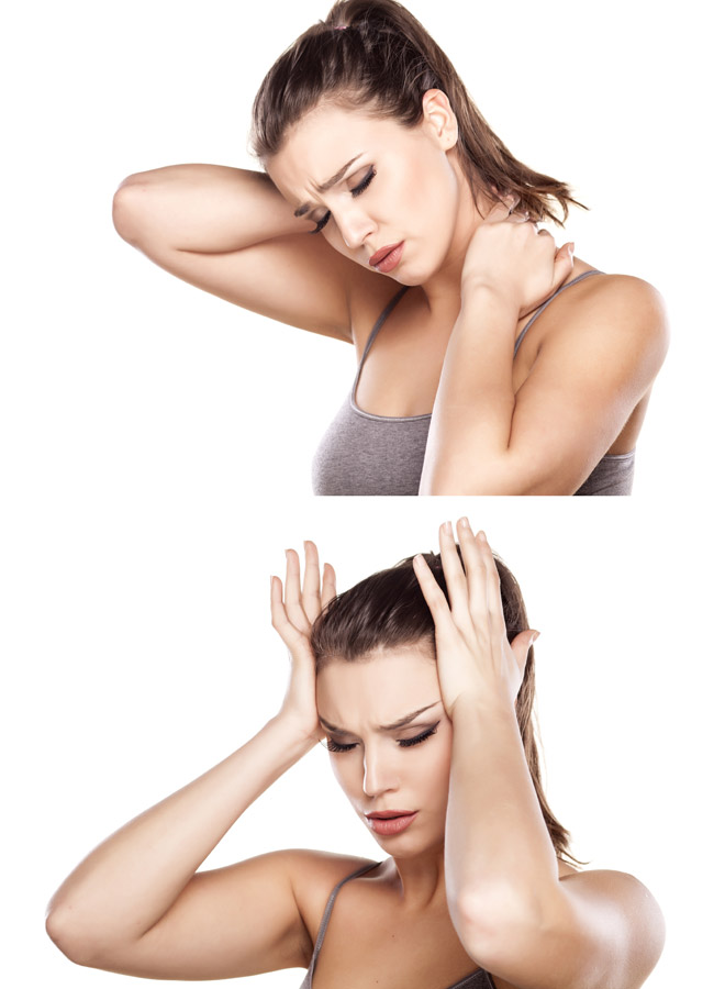 Da der Kopf und die Kiefer mit der Wirbelsäule durch Muskeln, Sehnen und Bänder verbunden sind, kann sich eine Craniomandibuläre Dysfunktion (CMD) auch über den Bereich des Kopfes hinaus auswirken. Die Schmerzen können daher nicht nur im Kiefer- und Gesichtsbereich oder in Form von Kopfschmerzen, sondern auch als Verspannungen der Kopf- und Nackenmuskulatur auftreten. Nacken- und Schulterschmerzen, Blockierungen der Halswirbelsäule, Skoliose, Beckenschiefstand oder Beinlängendifferenzen können die Folge sein.